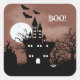 A large black castle and bare trees against a spooky night sky, these square stickers are fun for a Halloween costume party, Halloween birthday party or any occasion. MATCHING items in our store.