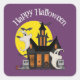 Cute Halloween sticker with editable text printed with image of colourful haunted house scene. For kids of all ages who love all things Halloween. Created in aprt with artwork by Angela Wenke of resaleclipart.com