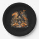 Halloween Haunted House with Pumpkins Black Paper Plate