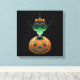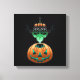Halloween Horror Punk pop culture fantasy art green zombie monster with Jack o Lanterns, pumpkins, and black cat wearing a skull mask.