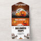 Invitations & Cartes > Invitations & Faire-part > Vacances & fêtes de fin d'année > Halloween Invitation Halloween Parti 2023 Jouez une fête d'Halloween rétro cool avec ces invitations très vintages! Elles ont une palette de couleurs orange / noir / gris / vert / violet. Le texte dit, "Vous êtes invité à un FaBOOlous Fling !" La dame et le gentleman des années 1950 sont habillés en sorcière et diable et tiennent un verre à martini et une fourche. Il y a aussi des fantômes, un jack-o-lanterne, des araignées, des chauves-souris, des étoiles rétro, un crâne et un hibou.