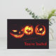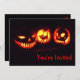 A Halloween Party Invitation featuring a Photo of 3 carved Pumpkins. One is a traditional grinning evil face, one is a witch's cat and the final one a creepy skull. You can customise all the text to suit your needs! Carving and Photo by - Jojo Kneebone Aka At the Snail's Pace.