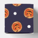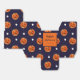 A delicious customisable Halloween Favour box design featuring sugar cookie illustration of an orange jack o lantern pumpkin and white polka dots on dark blue navy background.