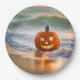 Halloween Jack-o-Lantern On The Beach Paper Plate