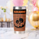 Halloween Jack-O-Lantern Orange & Black Plaid Name Insulated Tumbler