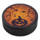 Halloween Jack o lantern pumpkin face and spider Hockey Puck