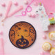 Happy Halloween circle badge with jack-o'-lantern smiling pumpkin