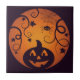 Happy Halloween circle badge with jack-o'-lantern smiling pumpkin