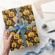 This wrapping paper sheets features classic a Halloween pattern featuring jack o lanterns in a pumpkin patch in classic orange and black Halloween colours. Perfect to wrap gifts for an October birthday for fan of Halloween and spooky season.