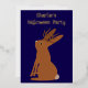 This beautiful foil Hallowen Party invitation features a digital art image of a Jackalope, a mythical creature, also known as a cryptid, that is rumoured to live in the woodland. The animal is a mixture of a jackrabbit and a deer that is the official mythical creature of the state of Wyoming. My design has the brown animal standing upright with its ears up as it gazes upwards. It has dark brown antlers on its head. The cheeky Jackalope has a reputation as a trickster, making it the perfect animal for some Halloween trick or treat fun.