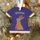 This awesome Christmas ornament features a digital art image of a Jackalope, a mythical creature, also known as a cryptid, that is rumoured to live in the woodland. The animal is a mixture of a jackrabbit and a deer that is the official mythical creature of the state of Wyoming. My design has the brown animal standing upright with its ears up as it gazes upwards. It has dark brown antlers on its head. The cheeky Jackalope has a reputation as a trickster, making it the perfect animal for some Halloween trick or treat fun. There is custom text so you can personalise it with a name.