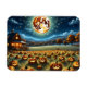 AI generated art of a spooky Halloween scene with a giant, glowing moon over a pumpkin patch and a farmhouse.