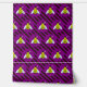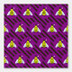 The background is a pattern of purple and black stripes.