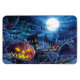 This magnet is shown with a festive Halloween scary pumpkins art print.