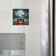 Magnet is shown with a spooky Halloween pumpkin and bats print.