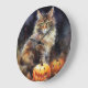 Halloween Maine Coon Cat With Pumpkins Scary Large Clock