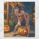 Halloween Monster Jack-o-Lantern & Bat Vixen Girl Wine Label