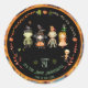 Have fun with these cute Halloween Monster Costume Party Sticker on a black background with bright orange trim featuring little monsters , a witch in pumpkin dress, a raven, an owl, skeleton and a few pumpkins. Great to use on envelopes or gifts. All text is customisable.