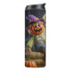 Celebrate Halloween with this fun and festive mug featuring a spooky pumpkin scarecrow design. Perfect for your morning coffee or as a gift during the fall season.