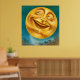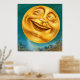 A funny vintage Halloween poster featuring the bright smiling moon.
