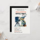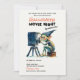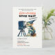 A fun but elegant Halloween party invitation with a movie night theme, featuring a gremlin operating a movie projector, in watercolor. Elegant, modern, simple and fun, it will please the fans of movie nights and Halloween fun.