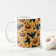 This is a mug cup for Halloween. It has a stylish design that combines for orange and black. Have a happy Halloween.