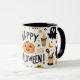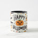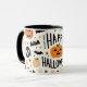 Product Description: This is a special mug filled with the spirit of Halloween. It is a perfect item for the Halloween season as it depicts various Halloween characters such as cute ghosts, pumpkins, witches, and more. Enjoy some Halloween fun with a warm drink from this mug!