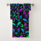 Halloween Neon Cats, Bats, Moons and Stars Bath Towel Set