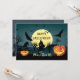 Halloween Night Celebration, Carnival, Trendy Greeting Card, Invitation Card, Postcard, Thank You, Save the Date - "Treat or Trick" MAGIC Halloween Night Greeting Card, Invitation Card, Postcard, Save the Date - Fantasy Halloween Night Landscape, Halloween Pumpkin lantern, Bat, Spider Web, Halloween Magic witch hat Logo, House, Moon and Sky, Halloween Wizard, Inspiration, Handmade. Halloween Magical Night symbols Illustration with Customise Text Change option
