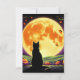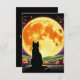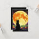 Send this illustrated invitation to your friends to your Halloween party. The design is of a mysterious black cat sits in silhouette against a bright full moon with a deep sky in shades of black, orange and purple. Jack-o'-lanterns, pumpkins and decorative accents glow with twisted branches scattered across a rolling hills and distant trees.
