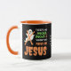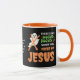 Modern, stylish NO HOCUS POCUS Christian Halloween Jesus Mug. The wording reads NO HOCUS POCUS WHEN YOU FOCUS ON JESUS, in bright white, green and orange typography. The design features a ghoul with a large X on it, and underneath there is CUSTOMIZABLE TEXT, which can be personalised with your name or other text. The Bible reference is John 8:32 - IF THE SON SETS YOU FREE, YOU ARE FREE INDEED. This Christian Halloween coffee mug would make a great gift during Halloween season. Choose from a wide selection of Christian Halloween designs by Berean Designs, especially created for people of faith who want to celebrate an alternative to Halloween. Matching gifts are available. Also in white.