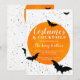 Costumes & cocktails! Celebrate your spooky Halloween and invite friends and family with this modern and simple elegant orange watercolor moon, black splatters, bats and typography. The color background is fully editable, you can move the bats around.