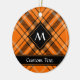 Orange and black halloween modern tartan sample swatch. Custom text on both sides. Custom monogram.