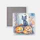 Halloween Oriental Blue Cat With Pumpkins Scary Magnet