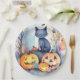 Halloween Oriental Blue Cat With Pumpkins Scary Paper Plate