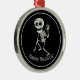 This holiday ornament is shown in the round shape with a Halloween skeleton art print.
