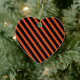 This ceramic porcelain ornament is shown in a heart shape with Halloween stripes of black and orange colours.