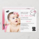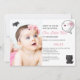 "Sweet as Can Be and Oh So Fun, Our Little Boo Is Turning One" pink and white baby girl Halloween-themed birthday party complete with cute little kawaii ghost with a pink polka dot bow, and cute little kawaii cat and a bat making their appearances as well. A single photo of your little one sits on the left side. Simply complete with your celebration details. Composite design by Holiday Hearts Designs (rights reserved). Template placeholder photos courtesy Unsplash.