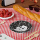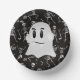 Halloween party paper bowl shown with a skeleton and ghost print.