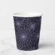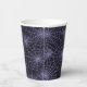 Halloween party paper cup is shown with a spiderwebs print.