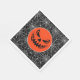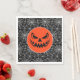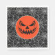 Halloween party paper napkin is shown with a festive spider webs and scary pumpkin face print.