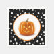 This standard cocktail size paper napkin is shown in a cute festive Halloween pumpkin print.