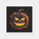 Party paper napkin is shown in the white cocktail size with a Halloween scary pumpkin print.