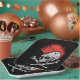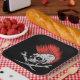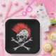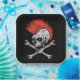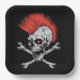 Halloween party paper plate is shown in a spooky skull print.