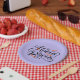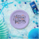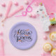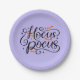 Halloween party paper plate is shown in a light purple colour with a Hocus Pocus bats print.