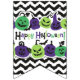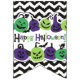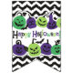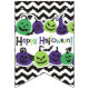 This festive Halloween party banner is shown with a cute pumpkins print.