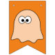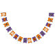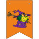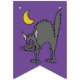 Purple & orange Halloween bunting with ghosts, pumpkins, witches & scary grey cat.