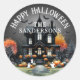 Fun Cute Spooky Haunted House Ghost Bats Orange Black Happy Halloween Party Classic Round Sticker.