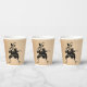 Halloween paper cups with a gothic and vintage aesthetic. Featuring a spooky dancing skeleton graphic on an aged paper effect background.
