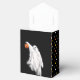 Creative Halloween party favours or treat boxes featuring funny ghost holding a trick-or-treat pumpkin on a polka-dot background.